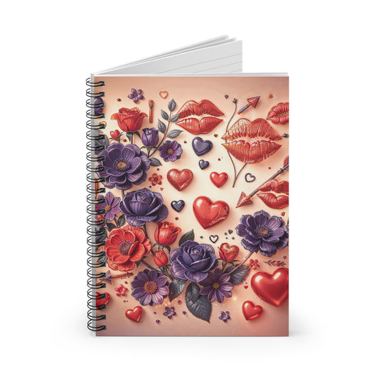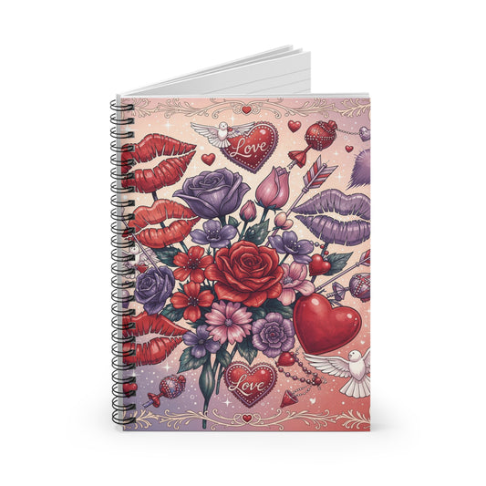 Valentine Floral & Lip Print Spiral Notebook